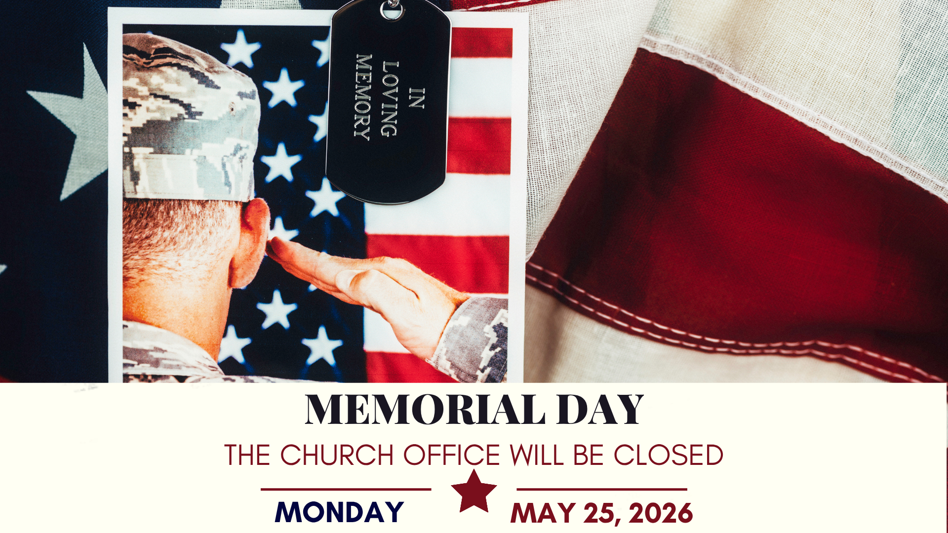 The church office will be closed on Monday, May 25th, in observance of the Memorial Day holiday.